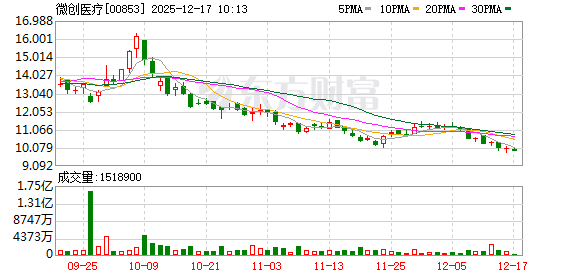 每经AI快讯,微创医疗(00853.HK)涨近5%,截至发稿涨4.64%,报10.61港元,成交额6722.56万港元。 ...