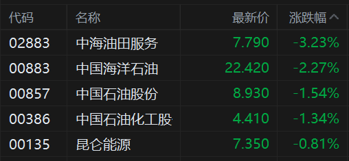 港股异动丨三桶油回调 中国海洋石油跌2.5%昨日曾创新高 国际油价大跌