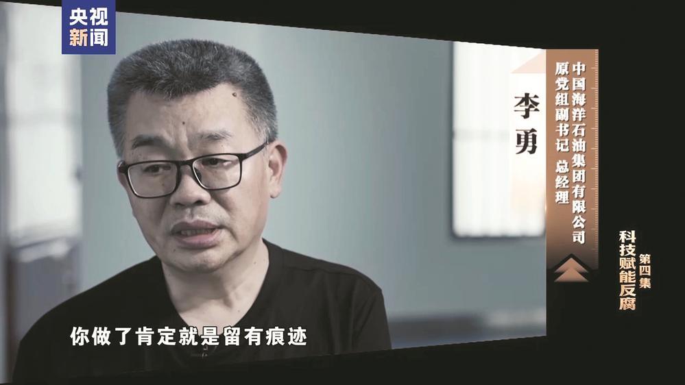 由中央纪委国家监委宣传部与中央广播电视总台央视联合摄制的电视专题片《一步不停歇 半步不退 让》,1月14日在总台央视综合频道晚8点档播出第四集《科技赋能反腐》,央视新闻新媒体平台同步播 发。 中国海洋石油集团有限公司原党组副书记 总经理 李勇:不应该去收人家的钱,你做了肯定就是留有痕 迹。想过这事,就像石油的管线里边,这个油流过去,它总会在管壁上留一些油一样的。 中央纪委国家监委国际合作局副局长 欧阳柏青:李勇案是国有企业跨境腐败的典型案件,这起案件涉 外的因素非常突出,超过83%的赃款来自境外,商人老板在境外代为收受、流转和存放赃款。我们的境 外调查取证工作涉及10个国家和地区。 李勇,中国海洋石油集团有限公司原党组副书记、总经理,2024年3月接受中央纪委国家监委审查调 查。李勇长期分管中海油在境外的大量项目,其跨境腐败问题极其突出。 李勇在石油系统工作近40年,他利用自己对国际海洋石油领域商业模式的深度了解,将权钱交易包裹在 看似正常的项目合作之中,大量受贿钱款也藏在海外,自认为就算有人怀疑也难以找到证据。 李勇:我就觉得在海外就没有调查权,鞭长莫及。有些项目闻你都能闻出那个味儿来,就是不正常,但 是你 ...