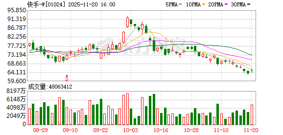 快手-W(01024.HK)11月20日耗资5821万港元回购90万股