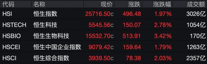 港股收盘 | 恒指收涨1.97% 科技股表现强势 快手-W劲升逾7%
