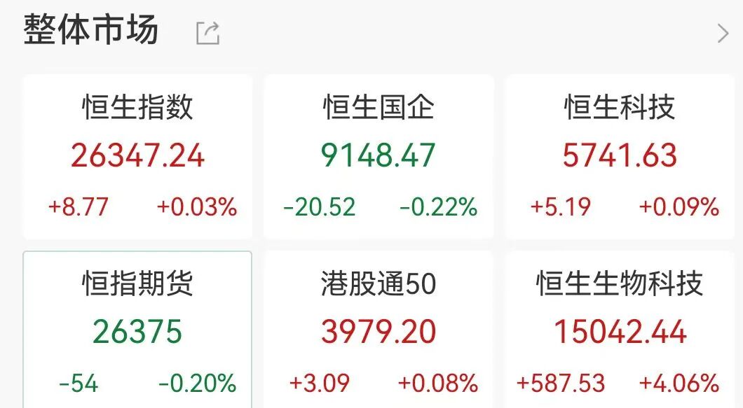 港股收盘 | 恒指收涨0.03% 脑机接口概念爆发 快手-W劲升11%领跑蓝筹