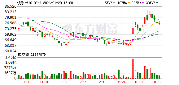 快手-W回购明细 | 日期 | 回购股数(万股) | 回购最高价(港元) | 回购最低价(港元) | 回购金额(万港元) | | --- | --- | --- | --- | --- | | 2026.01.20 | 39.30 | 76.700 | 75.850 | 2995.25 | | 2026.01.19 | 39.20 | 76.750 | 76.100 | 2996.04 | (文章来源:证券时报网) 证券时报·数据宝统计,快手-W在港交所公告显示,1月20日以每股75.850港元至76.700港元的价格回购 39.30万股,回购金额达2995.25万港元。该股当日收盘价76.050港元,下跌0.91%,全天成交额16.21亿 港元。 自1月19日以来公司已连续2日进行回购,合计回购78.50万股,累计回购金额5991.29万港元。 其间该股 累计下跌2.94%。(数据宝) ...