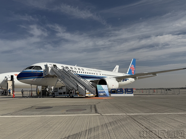 Core Points - China Southern Airlines (CSA) showcased its C919 aircraft for the first time at the Dubai Airshow 2025, marking its debut in the Middle East [1] - The new cabin interior design of the C919 emphasizes a blend of traditional Chinese aesthetics and modern simplicity, aimed at enhancing passenger comfort [2] - Since receiving its first C919 on August 28, 2024, CSA has operated the aircraft for over a year, with a current fleet of 7 units and over 10,000 flight hours [2] Group 1 - The C919 aircraft features a new generation cabin interior themed "National Style Elegance, Traveling in Light," combining bright and soft color tones with eco-friendly materials [2] - Business class seats are designed with light gray leather headrests and brown-gray leather bodies, showcasing exquisite stitching and a soft leather texture [2] - The economy class seats utilize sky blue wool fabric and light beige side decorations, creating a fresh and relaxing atmosphere for long flights [2] Group 2 - CSA aims to enhance its brand and operational efficiency while accumulating operational experience to promote large-scale commercial operations of Chinese civil aircraft [3]