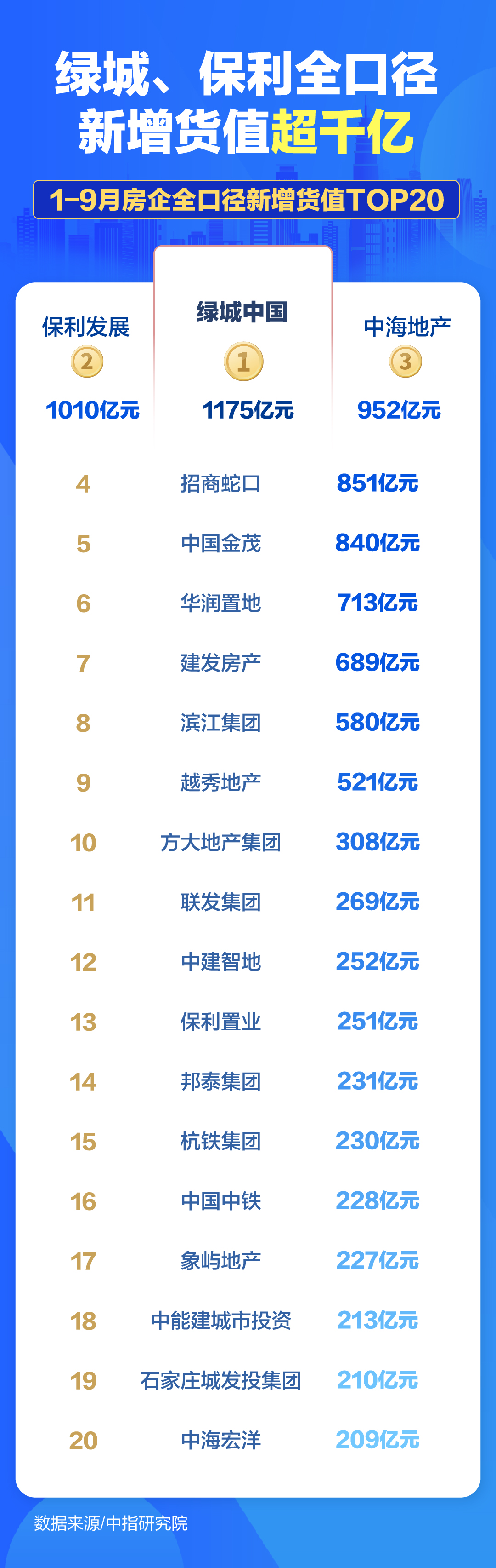 地产图谱|前三季度房企拿地上演“强者游戏” 绿城、保利领跑