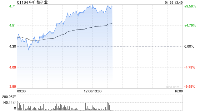 中广核矿业午后涨近9% 铀矿开采及贸易企业有望受益铀价上涨