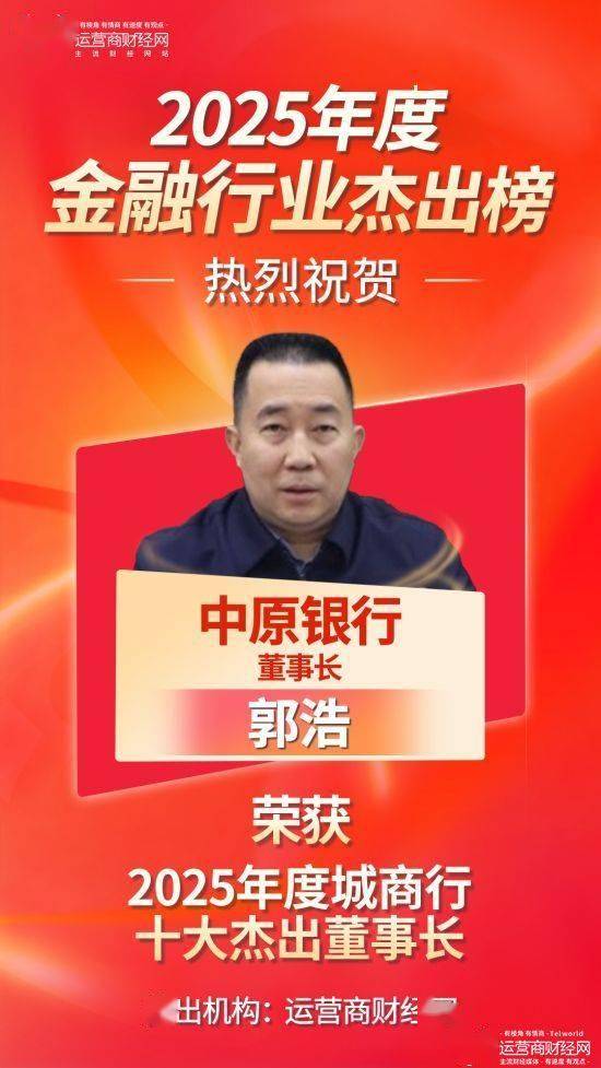 名单揭晓!中原银行董事长郭浩上榜“2025年度城商行十大杰出董事长”