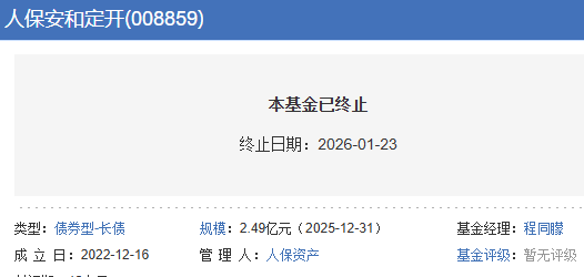 人保安和一年定开债清盘 成立3年盈利不足1成