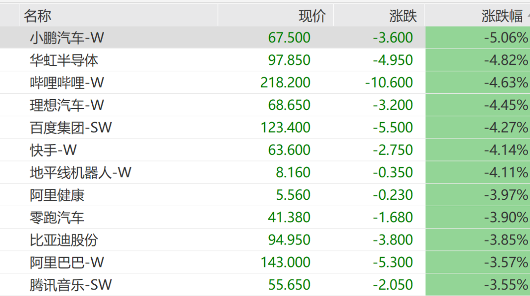 阿里、百度、小鹏、B站集体大跌,华虹半导体跌近5%,天数智芯逆势大涨20%