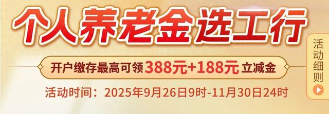 “个人养老金选工行”,最高领388元+188元微信立减金