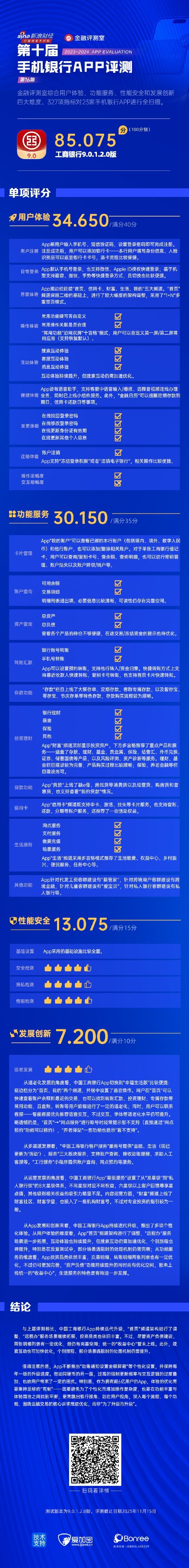 新浪金融评测室综合用户体验、功能服务、性能安全、发展创新4大维度,327项细分指标对中国工商银 行手机银行App"中国工商银行"进行全扫描,最终给予85.075分(总分100)。 与上届评测相比,中国工商银行App持续迭代升级,"首页"频道架构进行了调整,"远程办"服务场景继 续拓展,投资品类也依旧丰富。不过,尽管资产负债建设、两张明细列表有一定优化,但仍有完善空 间;统一的"收益中心"暂未上线。此外,搜索互动也可加快优化,个别旅程、部分场景遇阻时的处理机 制仍需提升。 值得注意的是,App不断推出"动账通知设置金额屏蔽"等个性化设置,并保持每年一版的升级速度。但 如同硬币的另一面,过高的强制更新频率与交互逻辑的过度叠加,也给用户带来了一定的困扰。特别 是,作为拥有超6亿用户的App,体验的优化需要秉持足够的"克制"——既要避免为了个性化而增加操 作复杂度,也要在功能丰富与体验简洁之间找到平衡,更需跳出银行视角、站在用户视角,深入每个流 程、每个功能,围绕金融交易的核心诉求推进优化,而非"为了升级而升级"。 评测报告 | | 用户注册 注册成功后,用户可以添加银行卡 -- 本行用户填写身份信息、人脸 | | ...