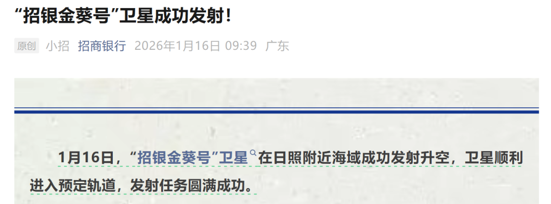 该背景下,各行各业的参与积极性都被调动起来,就连银行这一看似风马牛不相及的传统业态,也纷纷躬身入局,踊跃谋变。 近期,就有包括招商银行、浦发银行等股份行,集中把自家卫星送入太空。 银行卫星扎堆上天 1月16日,招商银行"招银金葵号"和浦发银行"浦银数智"卫星在山东日照附近海域成功发射入轨。 来源:柒财经 政策支持力度加码,企业争先恐后上车,商业航天正热潮涌起。 近日,《北京市关于促进商业卫星遥感数据资源开发利用的若干措施(2026—2030年)》正式印发。 文中提到,鼓励企业规划建设具有差异化优势、商业价值明确、应用前景清晰的商业卫星星座;完善空间基础设施资源,推动通导遥算能力融合,满足多 元化使用需求;加强太空云计算、人工智能、大数据等新一代信息技术在卫星星座中的应用。 针对发射卫星的具体用途,招商银行表示,"招银金葵号"是低轨窄带的物联网卫星,主要用于对全国范围内一手按揭楼盘实施高精度施工监测。 浦发银行相关人士提供的信息显示,该行依托"天启星座"的物联网数据获取能力,将进一步完善智能风控与综合服务体系,在重大自然灾害等极端场景 下,通过卫星链路快速恢复并提供关键基础金融服务。 据了解,该两颗卫星均隶属于 ...