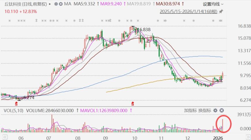 港股丘钛科技放量拉升超15%