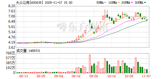 Group 1 - The stock price of Shanghai Dazhong Public Utilities (600635) closed at 6.75 yuan on November 6, 2025, with a slight increase of 0.3% and a turnover rate of 6.24% [1] - The trading volume was 1.51 million shares, with a total transaction value of 1.019 billion yuan [1] - On November 6, the net inflow of main funds was 13.14 million yuan, accounting for 1.29% of the total transaction value, while retail investors had a net outflow of 31.31 million yuan, representing 3.07% of the total transaction value [1][4] Group 2 - As of October 31, 2025, the company's registered share capital remained unchanged, with 533,643,000 H-shares and 2,418,791,675 A-shares, totaling a registered capital of 2.95 billion yuan [2] - The company will participate in the 2025 Shanghai-listed companies' third-quarter collective performance briefing on November 13, 2025, to discuss its operational results and financial status for the first three quarters of 2025 [2][4] - Investors can submit questions for the briefing from November 6 to November 12, 2025, and the meeting will include key executives such as the CEO and CFO [2]