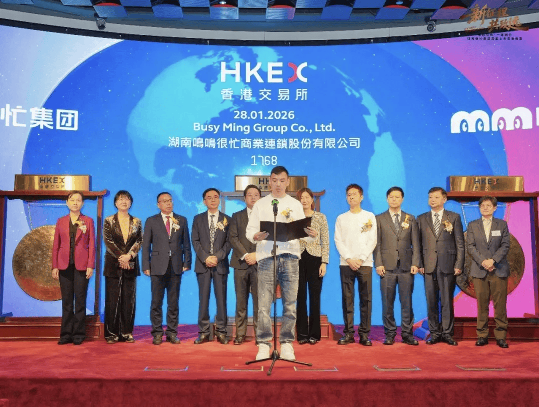 支撑其万店规模并保持盈利的核心,在于对"质价比"的极致追求。不同于传统零售层层加价的模式,鸣 鸣很忙通过量贩模式直连生产商与品牌方,依托规模化采购和标准化运营,大幅压缩中间环节。同时, 在庞大的门店网络背后,是一套高效运转的数智化供应链体系。鸣鸣很忙快速发展,建立在完善的物流 基建与数字化管理能力之上。 来源:环球网 【环球网消费报道 记者 刘晓旭】2026年1月28日,湖南鸣鸣很忙商业连锁股份有限公司(简称鸣鸣很 忙,股份代号:01768.HK)正式在香港联合交易所挂牌上市。当日收盘,其股价收至400港元/股,较发 行价上涨近75%,总市值达到862亿港元。这一市场表现,成为2026年开年以来备受瞩目的港股消费 IPO,更以超1520倍的超额认购成绩单,点燃了资本及投资者对消费板块的高度热情。 鸣鸣很忙创始人、董事长兼CEO晏周在上市仪式上坦言,公司从一家社区小店起步,初心从未改变—— 让消费者"买得到、买得起"好零食。鸣鸣很忙从这一朴素的愿景出发,在资本的助推下演变成了覆盖全 国的渠道升级。 尤为引人注目的是其下沉战略:约59%的门店深入县城与乡镇,真正将"小零食"做成了服务"大民生"的 重要载体。这种扎 ...