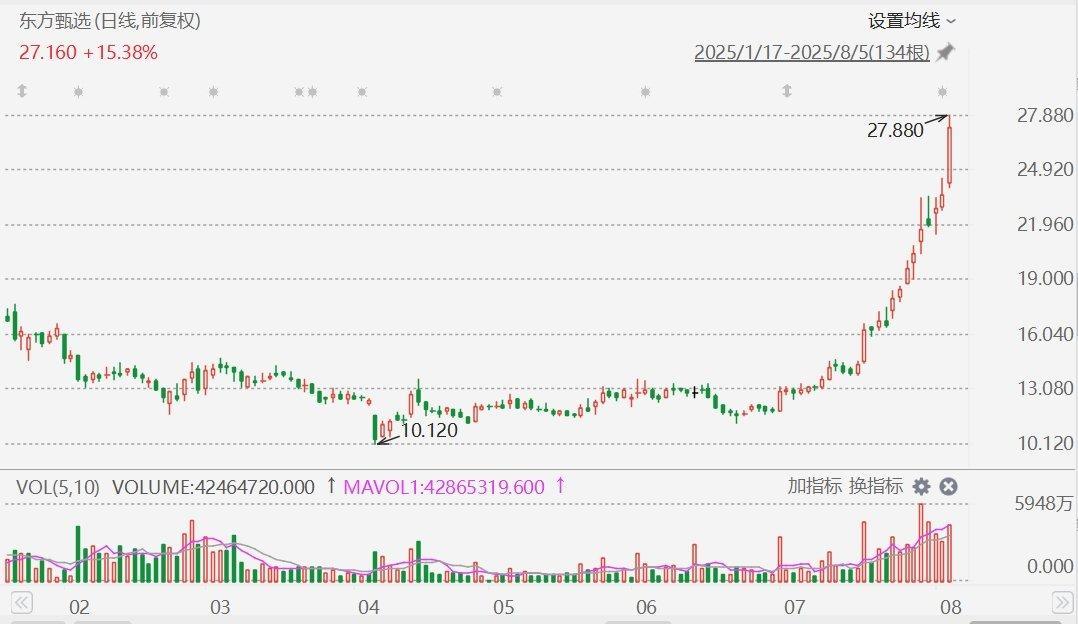 东方甄选放量大涨超18%,股价创去年10月以来新高!7月以来股价累涨135%