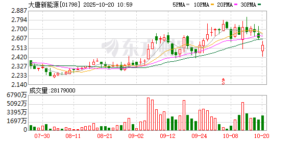 港股大唐新能源跌超3%