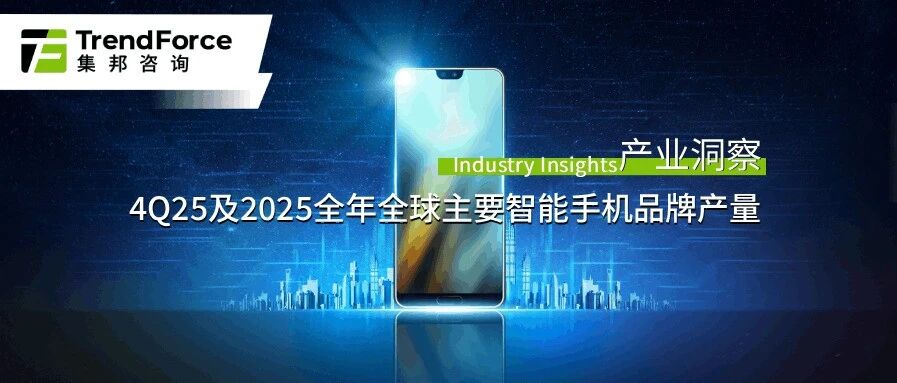 Mar. 9, 2026 产业洞察 根据Tr e n dFo r c e集邦咨询最新智能手机研究, 2 0 2 5年第四季得益于Appl e(苹果)新机冲量, 全 球 智 能 手 机 生 产 总 数 达 3 . 3 7 亿 支 , 季 增 2 . 7% 。 此 外 , Ap p l e 、 Sams u n g ( 三 星 ) 两 者 在 2 0 2 5年生产总数皆达近2 . 4亿支,并列全球第一。 Tr e n dFo r c e集邦咨询表示,2 0 2 5年上半年智能手机市场受惠中国市场补贴政策,下半年则有传 统旺季贡献,全年生产数约1 2 . 5 4亿支,年增2 . 5%。 2 0 2 6年因存储器价格飙涨,智能手机成本 骤增,预估全球生产规模将至少年减约1 0%,降至11 . 3 5亿支 。品牌厂商面临"涨价保利"和"降 规保量"的两难局面,低端市场将首当其冲。 | | Brand | | 4Q25 | | 2025 | | --- | --- | --- | --- | --- | --- | | Rank | | Production | QoQ | YOY | Production | | 1 ...