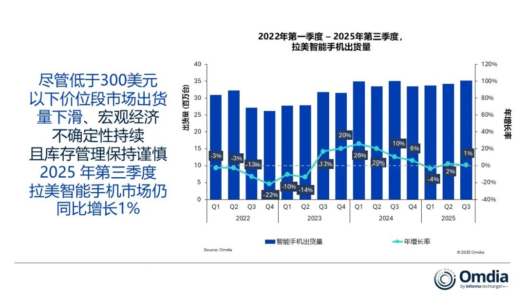 Omdia:2025年第三季度,拉美智能手机市场同比增1%,创2015年以来单季出货量最高水平