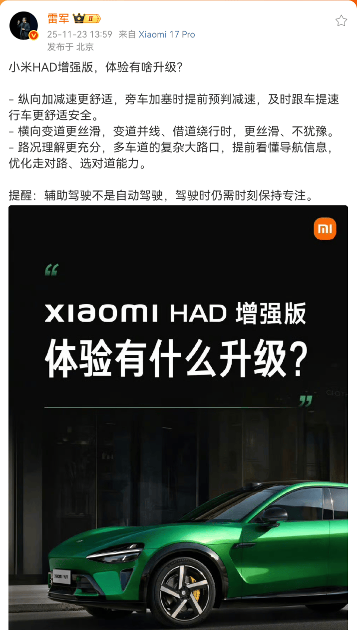 11月24日晚间,小米集团-W(01810)发布公告,公司董事会获本公司创始人、执行董事、董事长、首席执行官兼控股股东雷军先生(雷先生)通知,雷先生 于2025年11月24日自公开市场通过由其全资拥有的Team Guide Limited购入合共260万股本公司B类普通股,平均价为每股约38.58港元(增持事项)。以此计 算,此次雷军增持总计耗费资金超过1亿港元。 公告称,在上述增持事项后,雷先生于本公司40.63亿股A类普通股及19.94亿股B类普通股中拥有权益,合共相当于本公告日期本公司已发行股份数约 23.26%。 董事会认为增持事项显示雷先生对本公司的发展前景及增长潜力充满信心,以及其对本公司的长期承诺。 每经编辑|金冥羽 具体来看,第三季度,智能电动汽车及AI等创新业务分部收入290亿元,同比增长超199%。其中,智能电动汽车收入283亿元,其他相关收入7亿元。小米 汽车及AI(人工智能)等创新业务分部首次实现单季度经营收益转正,实现单季经营收益7亿元。 | | 截至以下日别上三回月 | | | | | --- | --- | --- | --- | --- | | | 2025年9月30日 | | ...