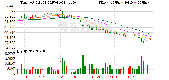 小米集团-W11月26日斥资3.01亿港元回购750万股
