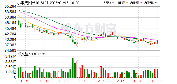 小米集团-W回购明细 | 日期 | 回购股数(万股) | 回购最高价(港元) | 回购最低价(港元) | 回购金额(万港元) | | --- | --- | --- | --- | --- | | 2026.01.13 | 400.00 | 38.040 | 37.940 | 15200.88 | | 2026.01.09 | 400.00 | 37.920 | 37.740 | 15132.64 | | 2026.01.08 | 500.00 | 38.160 | 38.040 | 19057.99 | | 2026.01.07 | 390.00 | 38.200 | 38.120 | 14883.60 | | 2026.01.06 | 385.00 | 38.900 | 38.860 | 14967.00 | | 2026.01.05 | 380.00 | 39.320 | 39.220 | 14929.13 | (文章来源:证券时报网) 证券时报·数据宝统计,小米集团-W在港交所公告显示,1月13日以每股37.940港元至38.040港元的价格 回购400.00万股,回购金额达1.52亿港元。该股当日收 ...