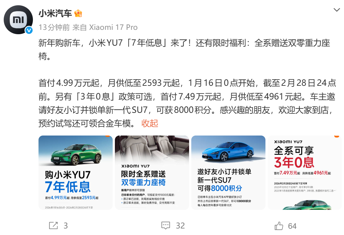 Group 1 - The core theme of the upcoming third live stream is to promote the new generation of Xiaomi SU7, similar to the previous stream [5] - Xiaomi's CEO Lei Jun has conducted three live streams within half a month, indicating a high level of engagement in the automotive sector [7] - The first generation of SU7 was a significant success, and the subsequent YU7 model achieved remarkable sales, creating pressure for the new SU7 to perform well [7][10] Group 2 - The third live stream will feature guests from the automotive media and Xiaomi's HAD autonomous driving division, focusing on driving capabilities and media reputation [5] - The pressure on Xiaomi is evident as any underperformance of the new SU7 could lead to widespread criticism online [7] - The company aims to continue the sales success of its automotive products with the new SU7 [10]