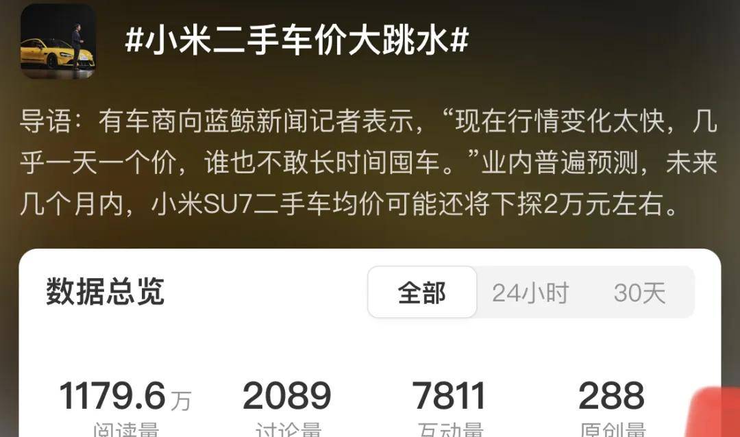 二手车价崩盘谣言不攻自破?雷军:小米SU7一年保值率排第一……