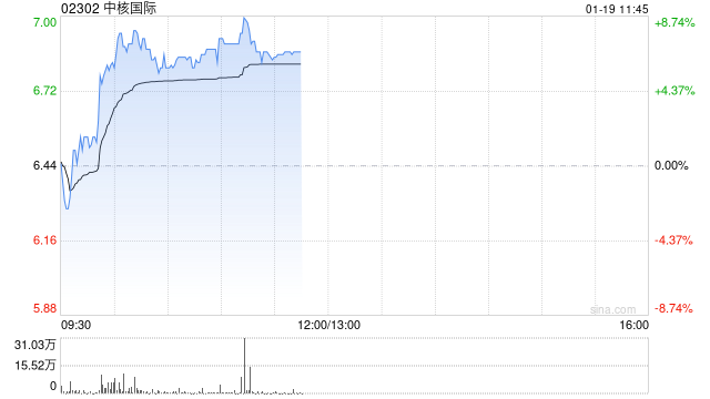 核电股集体上扬 中核国际(02302.HK)涨7.14%