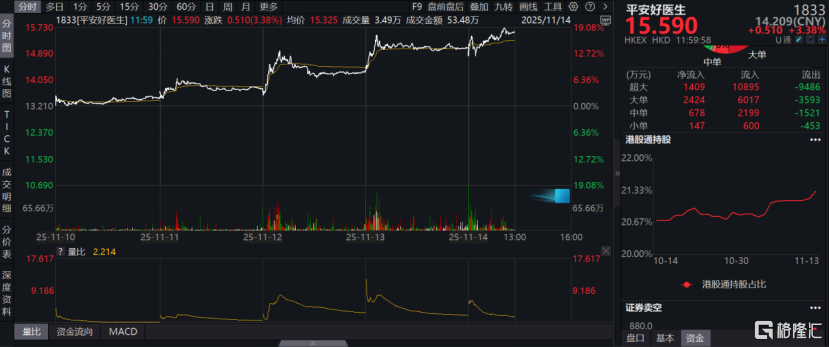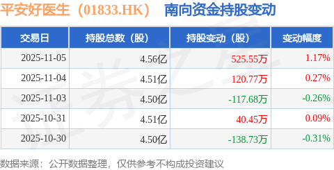 平安好医生(01833.HK):11月5日南向资金增持525.55万股