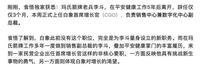 平安健康原CEO李斗被曝出任白象首席增长官,2024年薪酬总额超900万