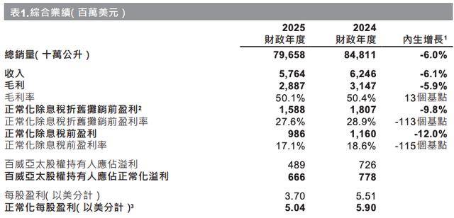 但过去一年,这位本土籍贯掌舵者仍未带领百威走出业绩下滑通道。 啤酒巨头百威,在中国市场正面临前所未有的增长压力。 2月12日,百威亚太(01876.HK)披露的业绩报告显示,公司2025年实现收入57.64亿美元(约合397.87 亿人民币),同比减少6.1%;啤酒销量为79.66亿公升,同比下降6.0%。 盈利方面,公司股权持有人应占溢利4.89亿美元(约合33.75亿元),同比减少32.6%,这是近几年的净 利润低点。 接连下滑的指标,让这位外资啤酒巨头的处境略显尴尬。 2月12日,百威亚太股价低开,盘中下跌幅度近6%。在此之前,国际多家投行已下调百威亚太2025年盈 利预期。花旗近期将百威亚太2025至2027年销售预测分别下调3%、4%及4%,以反映2025年下半年中国 业务前景较预期逊色。 这也是中国籍CEO程衍俊上任首份年度成绩单。去年2月,执掌帅印7年的CEO杨克离开百威亚太,全球 首席供应链运营官程衍俊接过权杖,任首席执行官及联席主席。彼时外界认为,程衍俊的任命是百威亚 太寻求重振中国市场的关键举措。 另据时代财经获悉,2026年百威亚太在中国市场将维持高强度营销与渠道投放,尤其2026年正值 ...