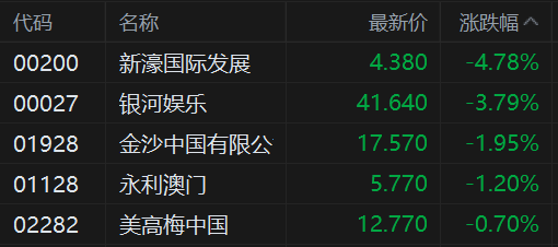 港股博彩股集体走低 美高梅中国跌4.06%