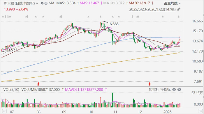 研报掘金|中金:上调周大福目标价至17.85港元,维持“跑赢行业”评级