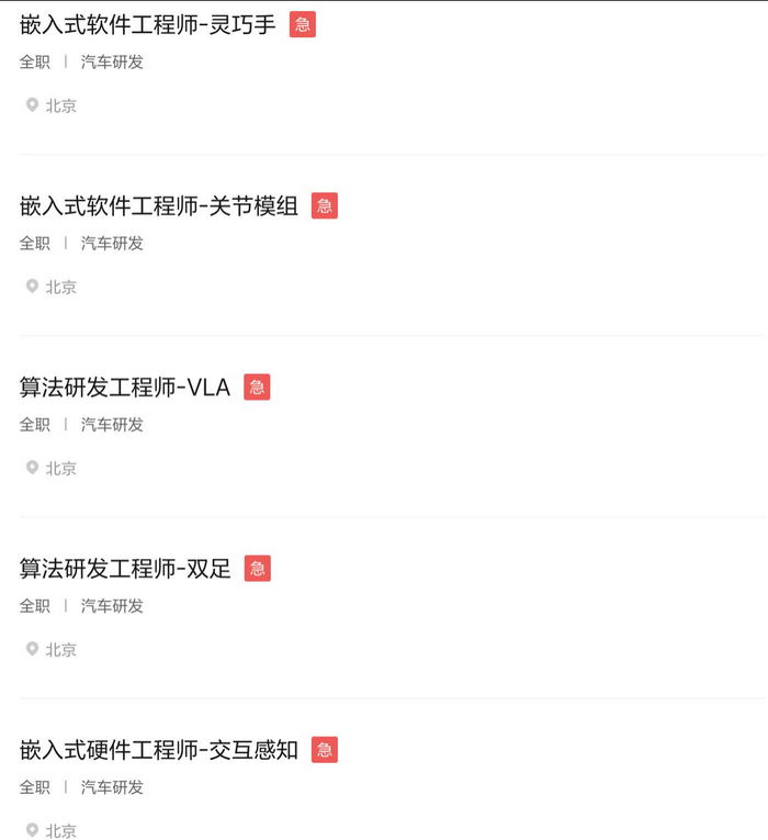 记者丨易思琳 编辑丨吴晓宇 21世纪经济报道记者独家获悉,1月26日上午10点半,理想汽车CEO李想召开了一场不一样的线上全员 会。近两个小时的全员会议,大部分内容都是李想分享自己对于AI的趋势判断。 李想拍板:理想一定要上人形机器人 据多位内部员工反馈,李想强调了接下来几个和AI相关的重要时间节点: 在上述重要的时间节点之外,李想还明确了一点:在汽车之外,理想一定会做人形机器人,并会尽快落 地亮相。同时,他还表示,要去招聘最好的人,把原来那些去到机器人创业公司的人再招回来。 2026年是所有想要成为AI头部公司上车的最后一年; 最晚2028年,L4一定能落地; 同时布局基座模型、芯片、具身智能、操作系统等业务的公司,最终全球不会超过3家,理想汽车 会努力成为其中一家。未来,理想会进一步强化具身智能的品牌定位,而不仅仅是创造移动的 家。 理想汽车在其官网发布了多个招聘岗位,其中包括嵌入式软件工程师、机械设计工程师,这些岗位涉及 灵巧手、双足、关节模组等方向,且岗位名称后均标注了"急"字。图源:理想汽车官网 而接下来,理想汽车为了进化为具身智能企业,公司将对研发进行新一轮的组织变革,将研发团队按照 基座模型团队 ...