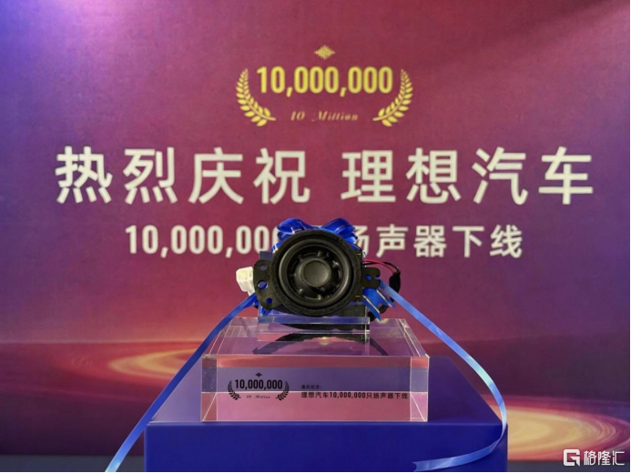 瑞声科技(02018.HK)下线理想汽车第1000万只铂金音响扬声器