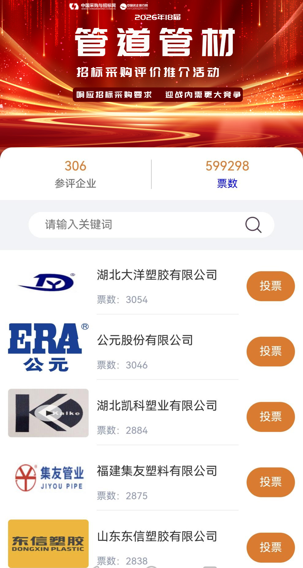 2026(第18届)管道管材招标采购评价推介活动第一期情况通报