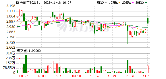 (文章来源:每日经济新闻) 每经AI快讯,11月18日,健倍苗苗(02161.HK)涨超5%,截至发稿,涨5.19%,报3.04港元,成交额 155.88万港元。 ...