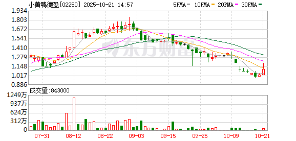 Group 1 - The stock of Little Yellow Duck (德盈, 02250.HK) in Hong Kong has increased by over 11% [2] - As of the report, the stock price rose by 11.65%, reaching 1.15 HKD [2] - The trading volume amounted to 800,500 HKD [2]