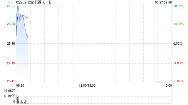 每经AI快讯,3月26日,微创机器人-B(02252.HK)绩前涨超3%,截至发稿涨3.64%,报25.06港元,成交 额2.06亿港元。 (文章来源:每日经济新闻) ...