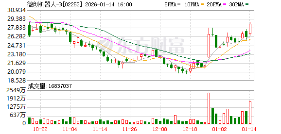 微创机器人-B午后涨超7% 手术机器人行业有望进入商业化和政策加速期