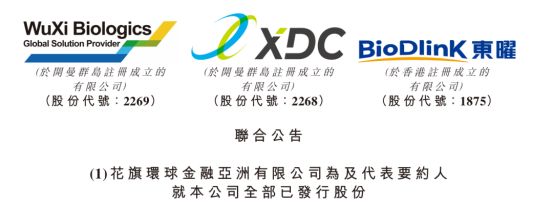 香港交易及結算所有限公司及香港聯合交易所有限公司對本公告內容概不負 責,對 其 準 確 性 或 完 整 性 亦 不 發 表 任 何 聲 明,並 明 確 表 示 概 不 就 因 本 公 告 全 部 或 任 何 部 份 內 容 而 產 生 或 因 倚 賴 該 等 內 容 而 引 致 的 任 何 損 失 承 擔 任 何 責 任。 本 公 告 僅 供 參 考,並 不 構 成 收 購、購 買 或 認 購 本 公 司 證 券 的 邀 請 或 要 約。 本公告的全部或部份內容不會在違反任何司法權區的相關法律或法規的情況 下 於 或 向 該 司 法 權 區 發 佈、刊 發 或 派 發。 (於 開 曼 群 島 註 冊 成 立 的 有 限 公 司) (股 份 代 號:2269) (於 開 曼 群 島 註 冊 成 立 的 有 限 公 司) (股 份 代 號:2268) (於 香 港 註 冊 成 立 的 有 限 公 司) (股 份 代 號:1875) 聯合公告 (1)花旗環球金融亞洲有限公司為及代表要約人 就本公司全部已發行股份 (要 約 人 及 要 約 人 一 致 行 動 人 士 已 擁 有 或 同 意 將 予 收 購 的 該 等 ...