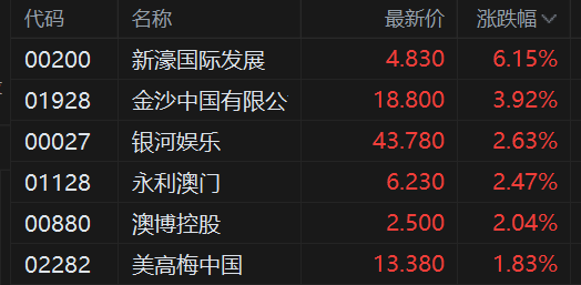 港股美高梅中国午后复牌一度涨超4%