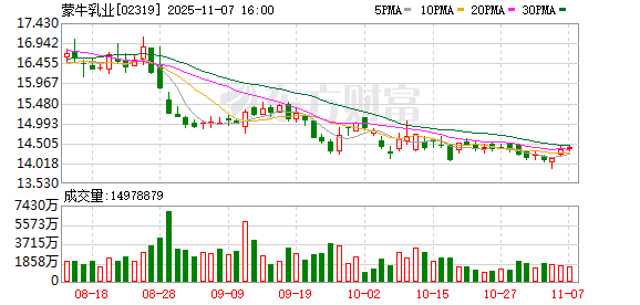 蒙牛乳业(02319.HK)11月7日回购40.00万股,耗资575.78万港元
