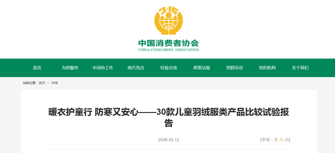 一、背景 儿童皮肤娇嫩、抵抗力较弱,对衣物的安全性和舒适性要求远高于成人。儿童羽绒服作为冬季核心保暖衣物,其填充物品质、面料安全性、气味等直接关 系儿童身体健康与穿着体验。近年来,儿童羽绒服市场规模持续扩大,产品覆盖不同年龄段、设计风格及价格区间,但市场繁荣背后是否存在质量安全隐 患?消费者应该如何选择?为全面掌握当前儿童羽绒服质量状况,向消费者提供客观真实的产品信息,指导科学选购,中国消费者协会开展了30款儿童羽 绒服比较试验工作。 本次比较试验委托远东正大检验集团有限公司完成样品检测,检测结果仅对样品负责。 二、样品情况 1.样品来源:30款样品由中消协工作人员以普通消费者身份在线下实体店和线上电商平台上随机购买,分别购自北京西单大悦城、京东、天猫、小红书、 拼多多、唯品会和抖音商城直播间。 2.价格分布:30款样品的销售价格区间分布如下:300元以下的8款,300-500元的17款,500-800元的4款,5000元以上的1款。 3.品牌范围:包括NIKE、年衣、高梵、mette kids、英氏YeeHoO、波司登、齐齐熊®、balabala、李宁YOUNG、PAW IN PAW、CANADA GOOS ...