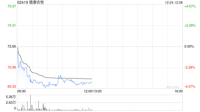 智通财经APP讯,德康农牧(02419)发布公告,于2025年12月24日该公司斥资629.3万港元回购8.99万股, 回购价格为每股69.4-72.5港元。 ...
