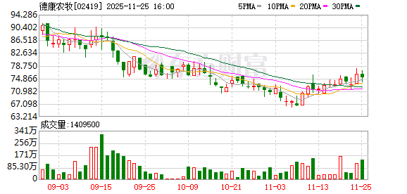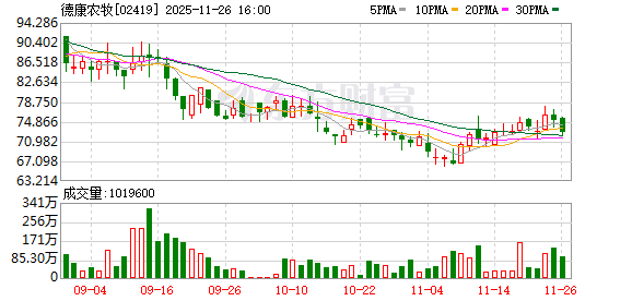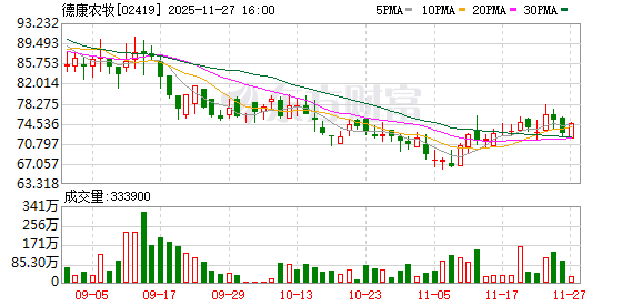 德康农牧(02419.HK)11月26日耗资1109.8万港元回购15.2万股