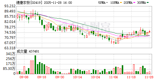德康农牧(02419)公布,2025年11月28日耗资约491万港元回购6.55万股股份。 ...