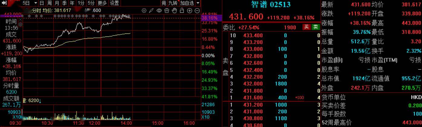 港股智谱午后大涨近40%