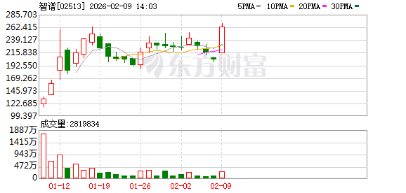 消息面上,据智谱官方公众号2月4日消息,混合思考模型GLM-4.7-Flash发布两周,在Hugging Face的下 载量突破了100万。此外,Open Router平台上线搜索排名第一的神秘匿名模型Pony Alpha引发热议,分 析猜测该模型可能是DeepSeek-V4、智谱GLM新模型等。 广发证券发布研报称,作为国内领先的大模型服务提供商,智谱以自研GLM基座大模型为核心,形成 了包括多模态、Agent和Coding完整的模型矩阵,为企业客户提供API服务、本地化部署与行业解决方 案。该行预计公司2025-2027年营收保持高速增长,规模效应逐步显现,长期盈利具备较强确定性。 智通财经APP获悉,智谱(02513)午后涨幅扩大逾30%,截至发稿,涨27.95%,报260港元,成交额5.81 亿港元。 ...